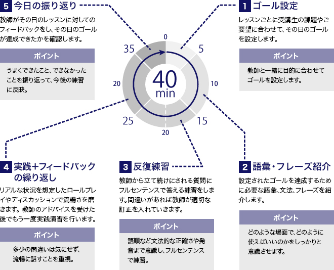 その設定されたゴールを達成するための最適なレッスンを40分の中で構成します。